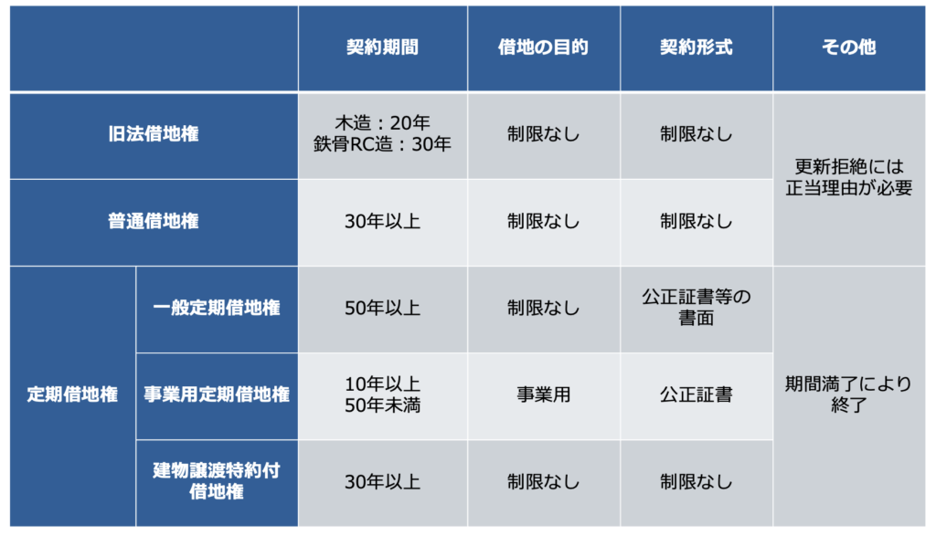 借地権にはいくつかの種類があり、相続した借地権がいつの時代の法律に基づいているかによって、その後の権利の強さや期間が大きく異なります。これらを正確に把握することが、相続後のトラブル回避の第一歩です。
