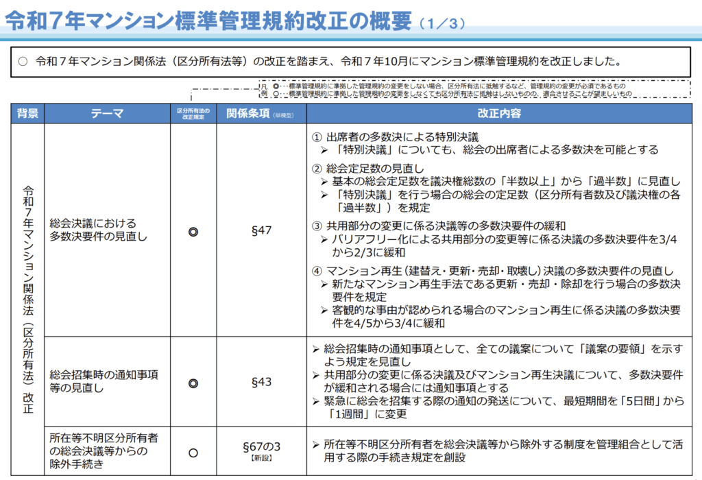 この改正は、2026年4月に施行される「改正区分所有法」に合わせたものとなっています。